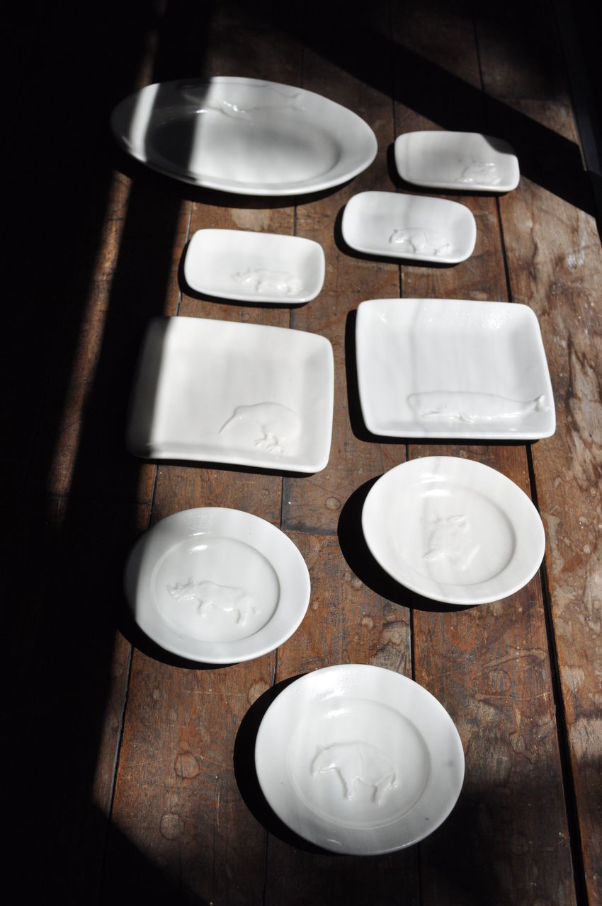 窓辺の棚の作品達の美しい影絵