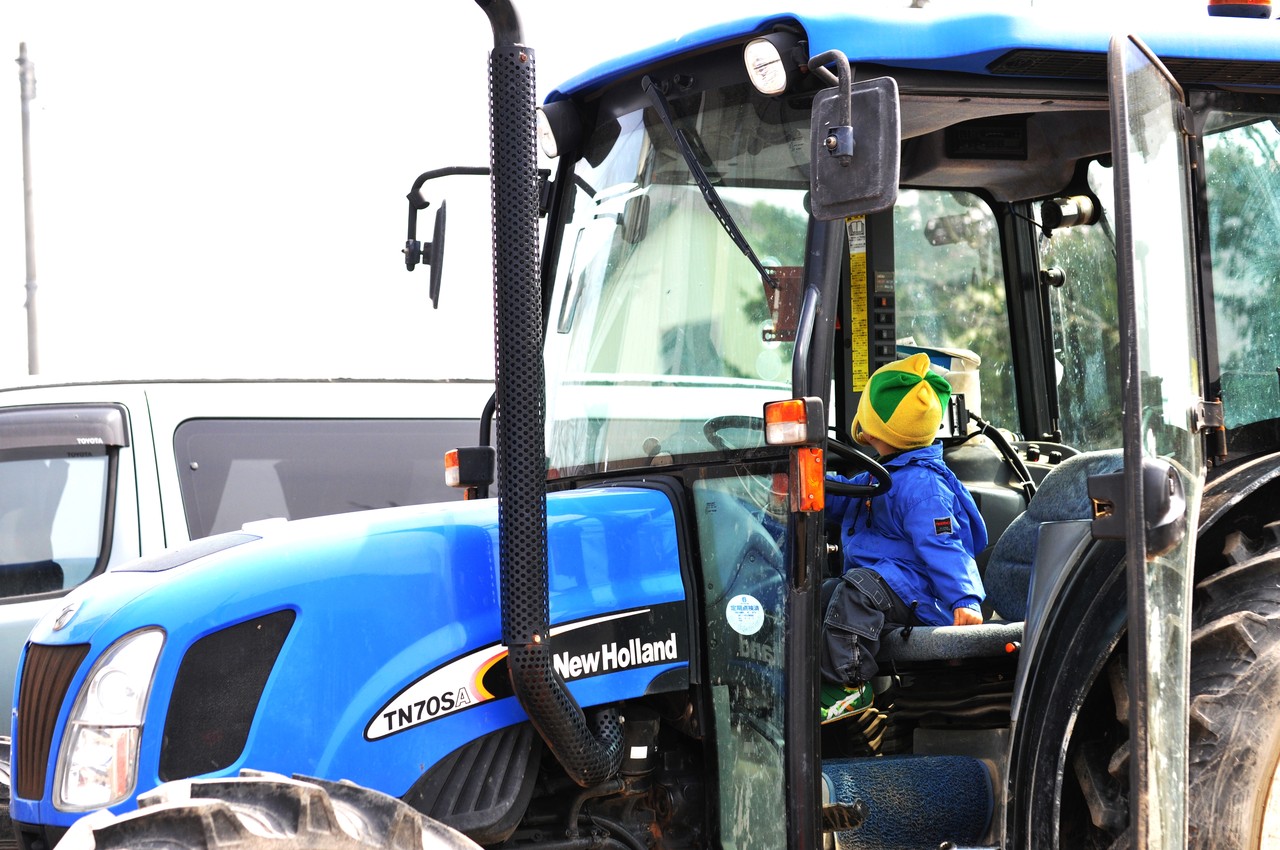 かなりでっかいトラクターに乗ってハンドル操作