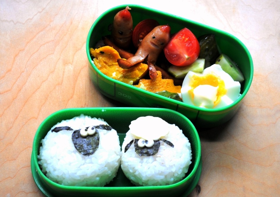 自分史上初めてのキャラ弁 (ヒツジのショ~ンに見えるかな?)