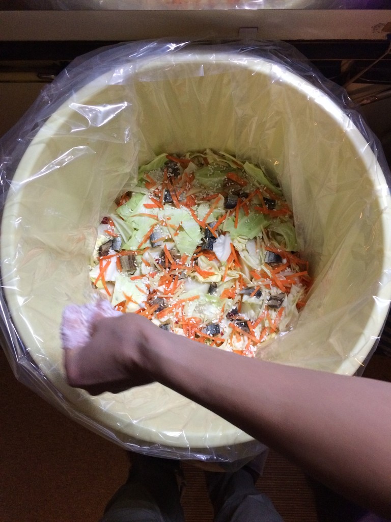 ④去年は押しブタを漬けもの袋の中に入れて上から重石をしていましたが