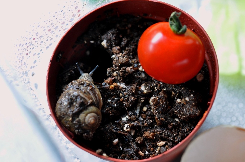 庭に出ると天敵のマイマイカブリがいるし